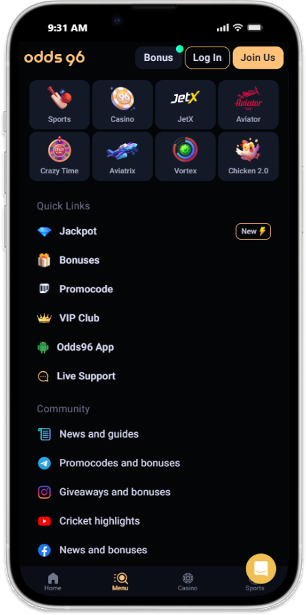 The Odds96 apk provides easy access into multitude of sports and varying betting styles. Players in India are able to choose between pre-match or live betting.